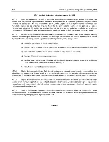 9.7.7.1 Antes de implementar un SMS, el proveedor de servicios debería realizar un análisis de brechas. Este