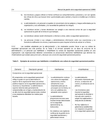 Tabla 5. Ejemplos de acciones que habilitarán o inhabilitarán una cultura de seguridad operacional positiva