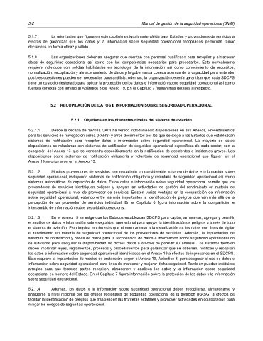 5.2.1.4 Además, los datos y la información sobre seguridad operacional deben recopilarse, almacenarse y